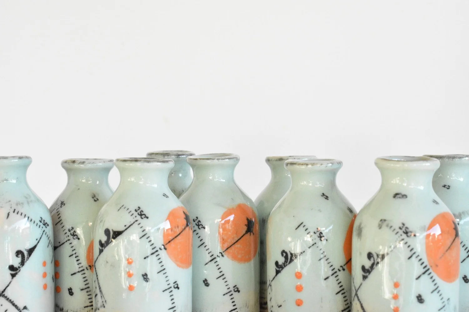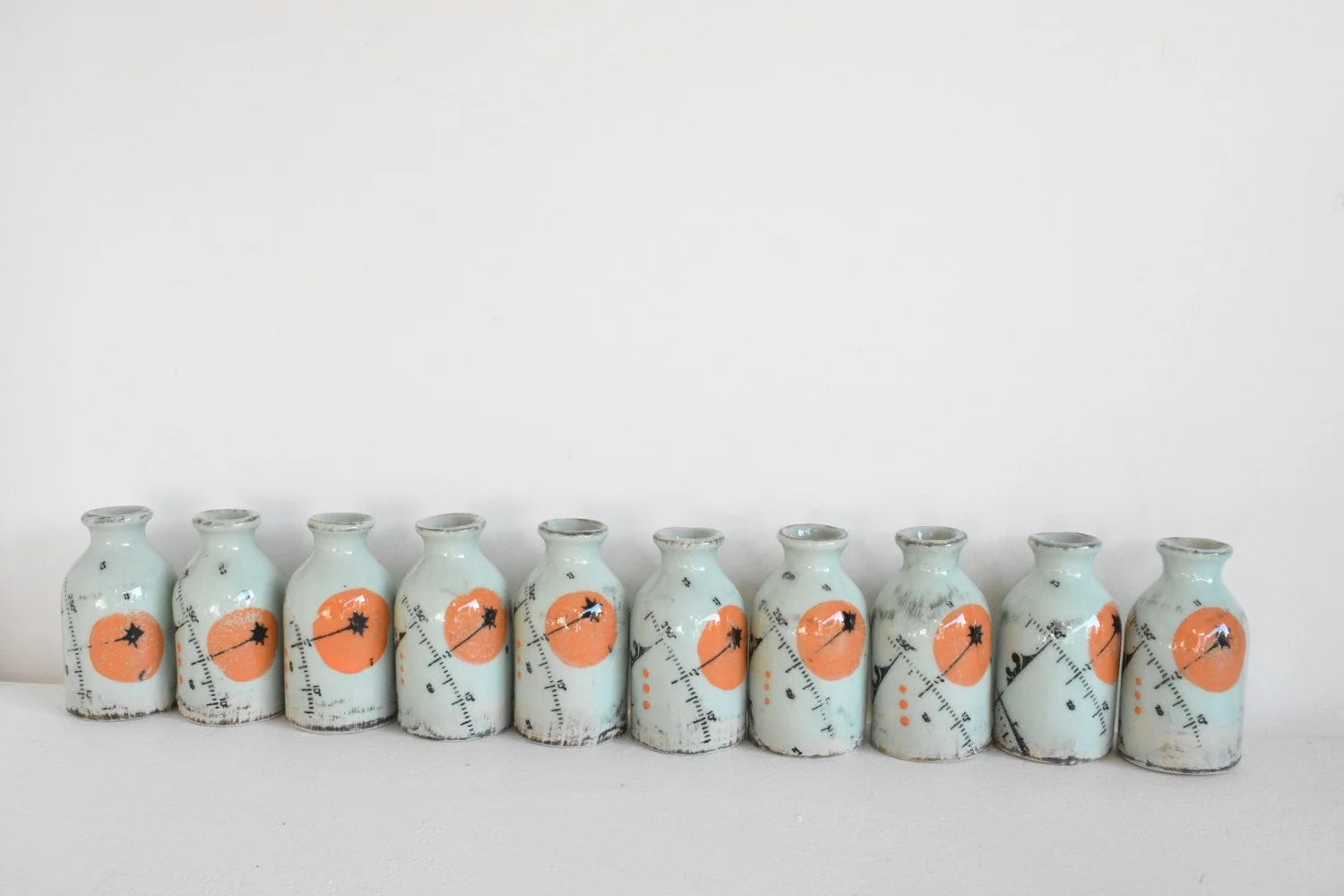 These one-of-a-kind bottles are decorated with slips and underglazes to achieve a distinctive, weathered patina.